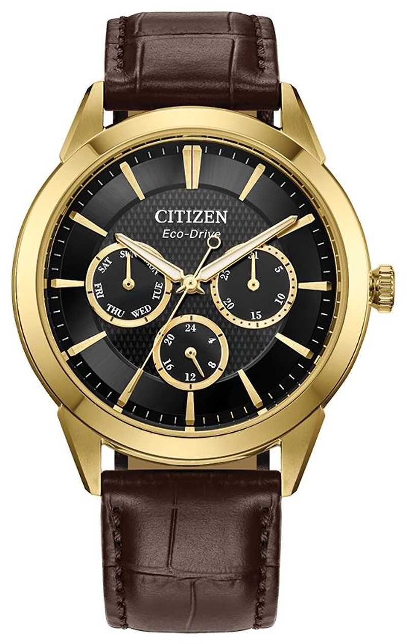 - Materials: Gold, Stainless Steel, Brown, Leather