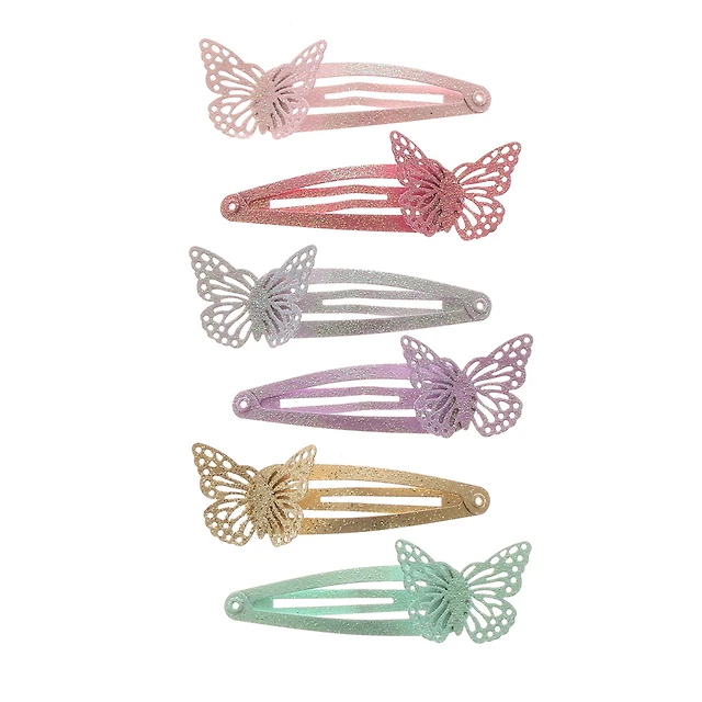 Claire's Club Butterfly Glitter Snap Hair Clips - 6 Pack