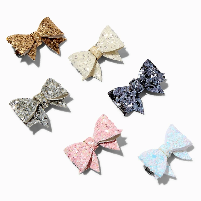 Claire's Club Glitter Sequin Hair Bow Clips - 6 Pack
