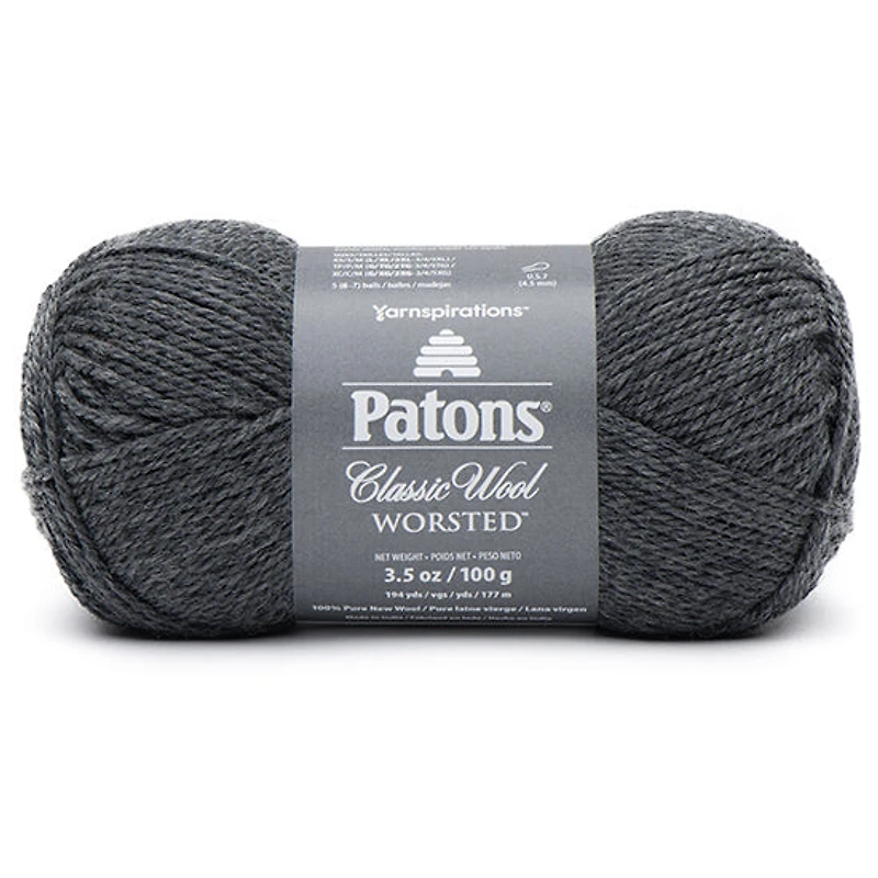 Patons Classic Wool Worsted is a soft, premium 100% wool yarn. With a versatile worsted weight and a wide range of colours, it’s perfect for garments, accessories and home decor projects.Features: Content: 100% wool Care: hand wash, do not bleach, do not dry clean, do not iron, lay flat to dry Weight: 100 g/3.5 oz Yardage: 177 m/194 yd Gauge: 4 worsted Knitting gauge: 26 rows x 20 sts = 4 x 4 in (10 x 10 cm)  Crochet gauge: 17 rows x 14 sc = 4 x 4 in (10 x 10 cm) Knitting needle: 4.5 mm Crochet hook: 5 mm