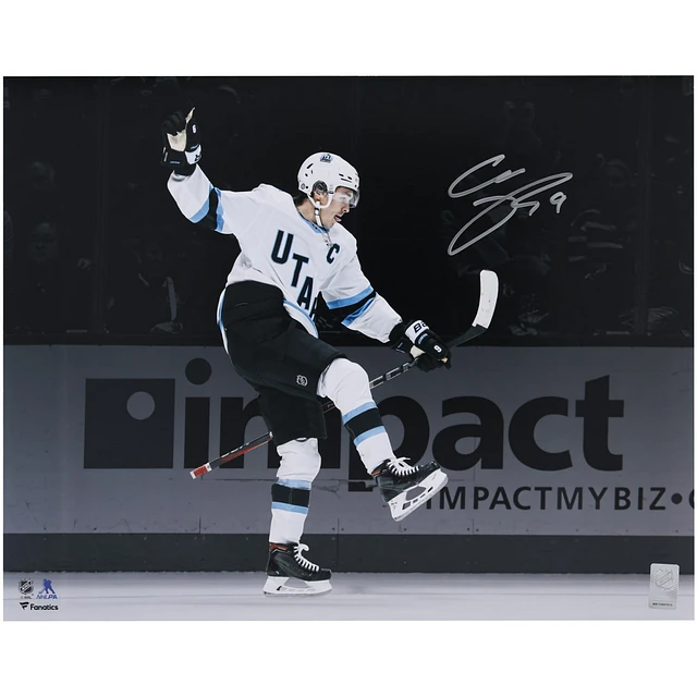 Clayton Keller Utah Hockey Club Autographed 16" x 20" White Jersey Celebration Spotlight Photograph