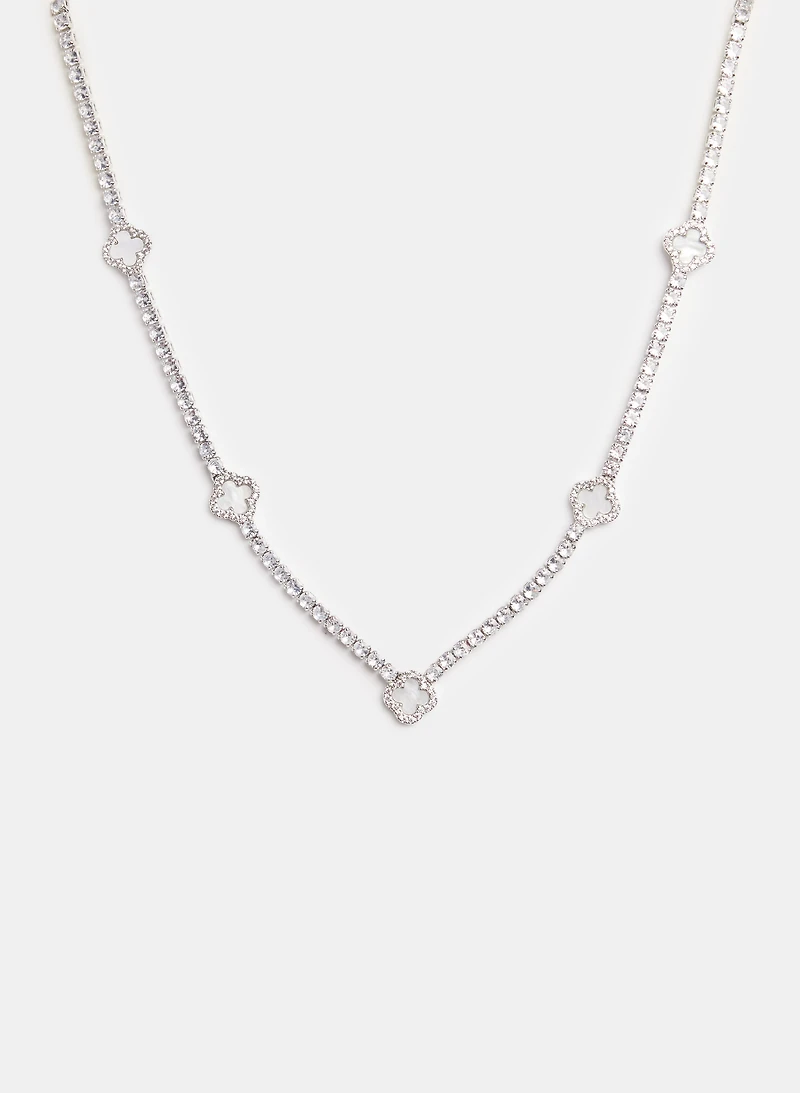 Add a touch of elegance to your outfit with our necklace featuring clover inserts embellished with delicate crystals. Pair it with the matching earrings from our collection.