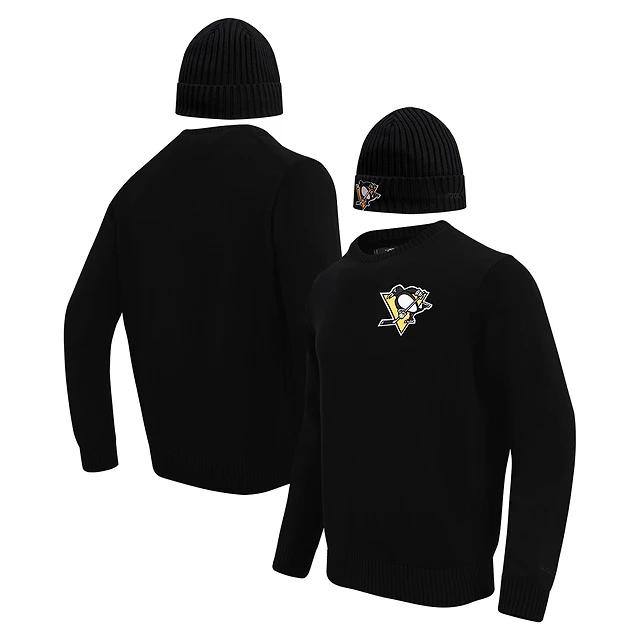 Coffret cadeau pull-over et chapeau en tricot à revers Pro Standard pour hommes des Penguins de Pittsburgh noirs