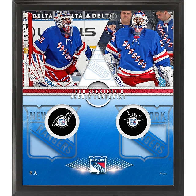 Coffret Shadowbox encadré avec rondelles de hockey autographiées d'Igor Shesterkin et Henrik Lundqvist