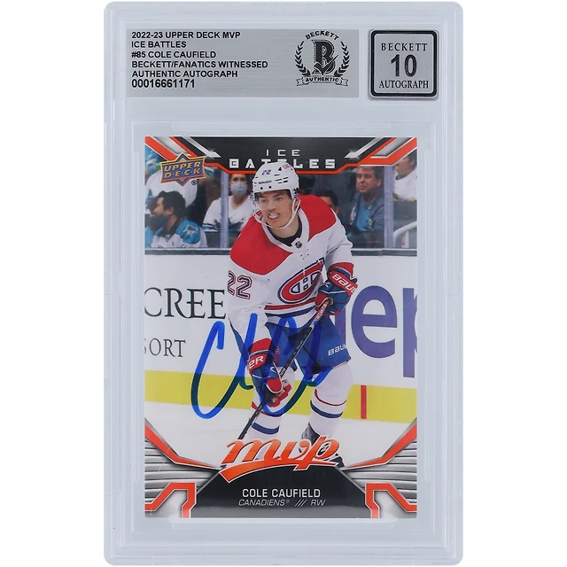 Cole Caufield Canadiens de Montréal autographiés 2022-23 Upper Deck MVP Ice Battles #85 Beckett Fanatics Witnessed Carte authentifiée