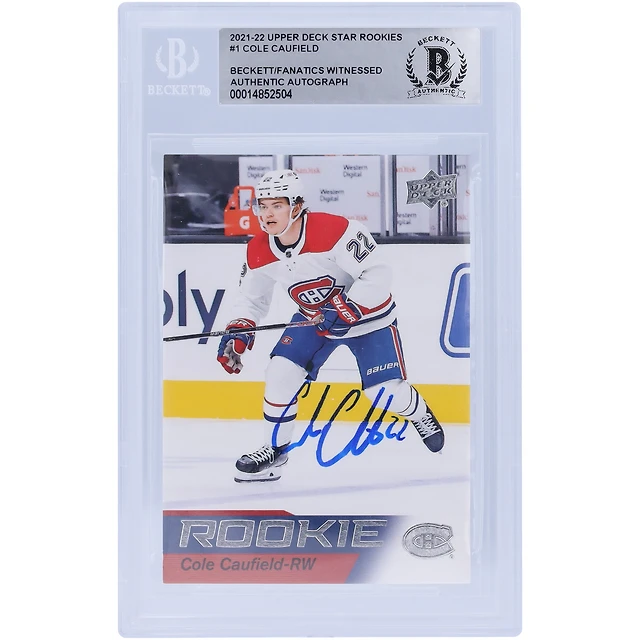 Cole Caufield, Canadiens de Montréal, carte de recrue authentifiée numéro 1 des Upper Deck Rookies 2021-22 autographiée par Beckett Fanatics