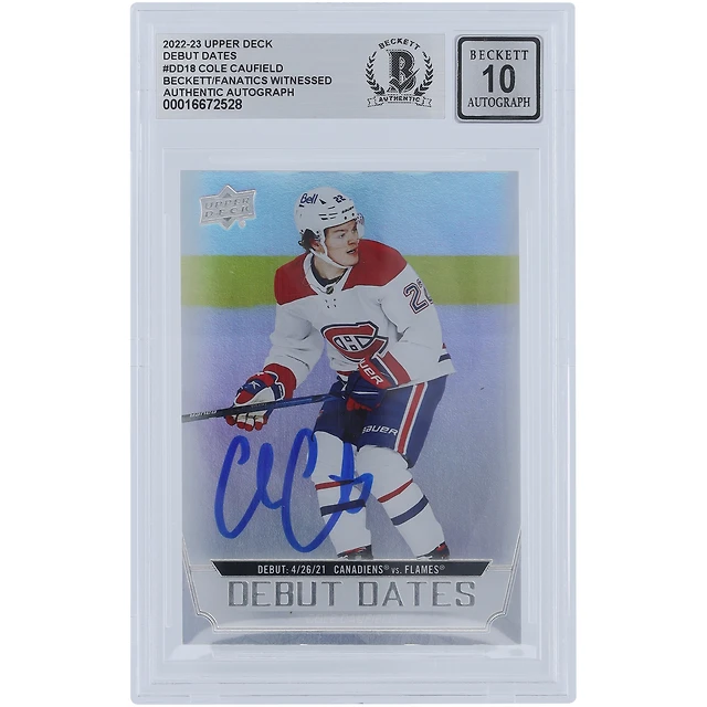 Cole Caufield Canadiens de Montréal Dates de début 2022-23 Upper Deck autographiées #DD-18 Fanatiques de Beckett témoins Carte 10 authentifiée