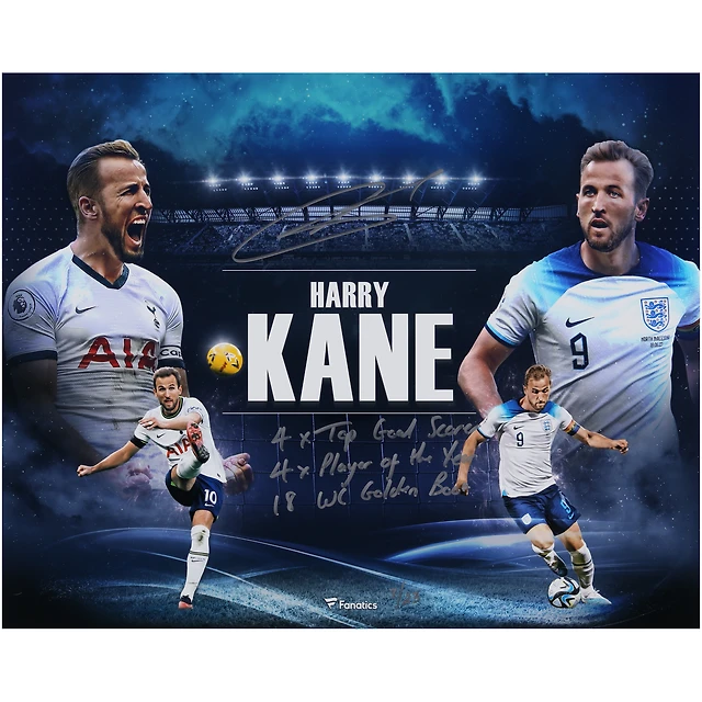 Collage autographié de 16" x 20" de Harry Kane avec plusieurs inscriptions - Édition limitée à 23 exemplaires