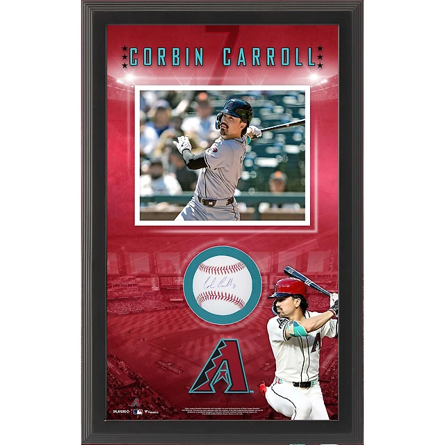 Collage de boîtes à ombres encadrées autographiées de Corbin Carroll, Arizona Diamondbacks
