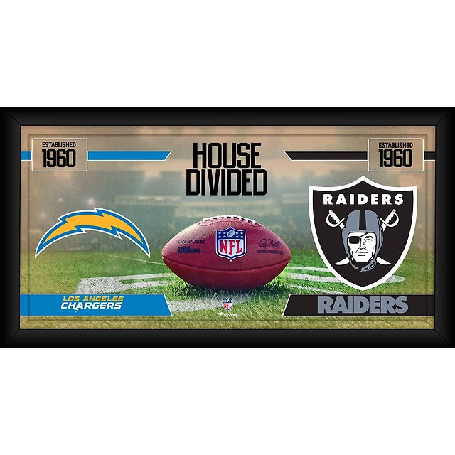 Collage de football encadré 10" x 20" des Chargers de Los Angeles contre les Raiders de Las Vegas