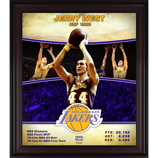 Collage de joueurs classiques en bois dur encadré de 15" x 17" de Jerry West Los Angeles Lakers