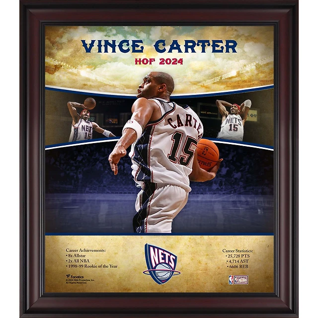 Collage de joueurs classiques en bois dur encadré de 15" x 17" de Vince Carter, New Jersey Nets
