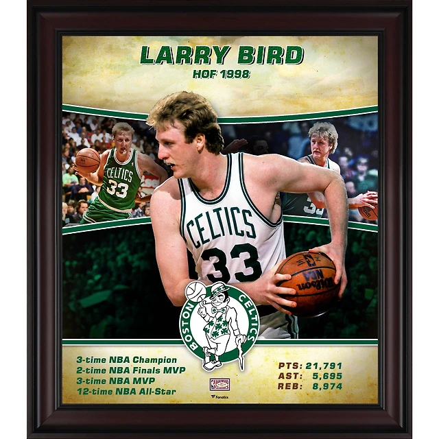 Collage de joueurs encadré en bois dur de 15" x 17" des Celtics de Boston, Larry Bird