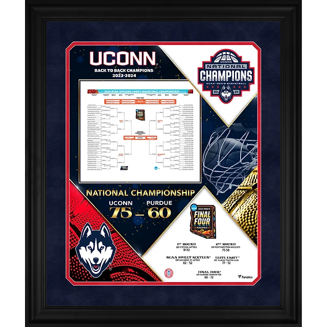 Collage de supports encadrés de 20" x 24" des champions nationaux de basketball masculin de la NCAA 2024 des Huskies de l'UConn