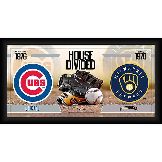 Collage encadré de baseball des Chicago Cubs contre les Milwaukee Brewers 10" x 20"