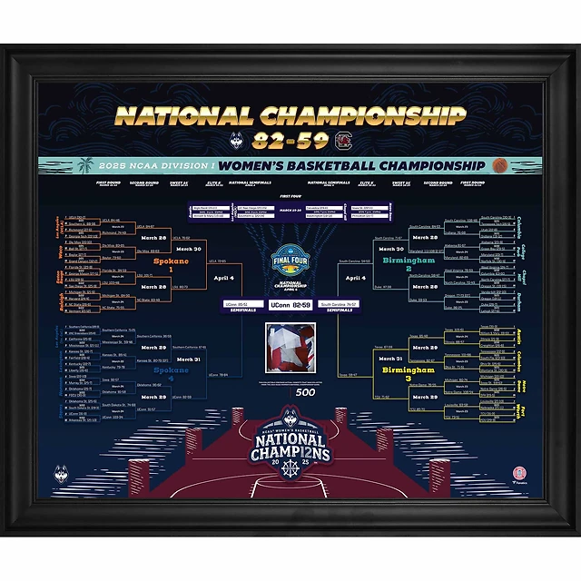 Collage encadré des Huskies de l'UConn (20" x 24"), championnes nationales de basketball féminin de la NCAA 2025, avec confettis utilisés lors du match - Édition limitée à 500 exemplaires