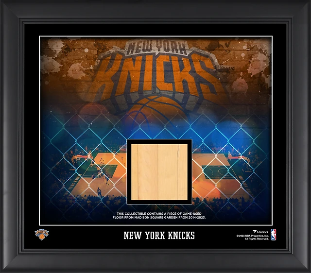 Collage encadré des New York Knicks (15" x 17") avec un morceau du terrain du Madison Square Garden utilisé lors des matchs de 2014 à 2023