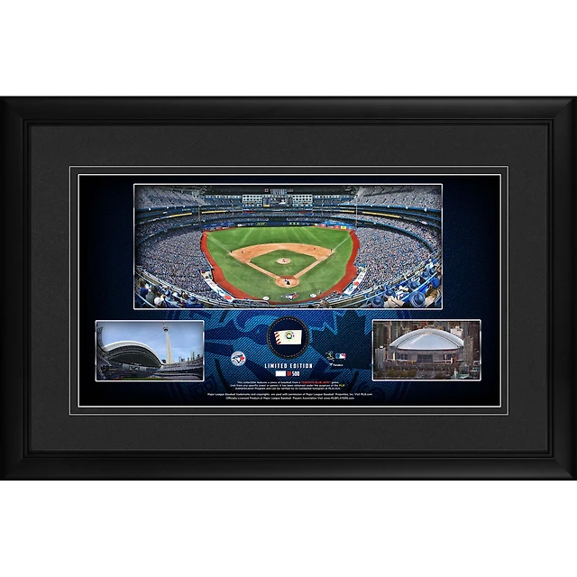 Collage panoramique encadré des Blue Jays de Toronto (10" x 18") avec une balle de baseball utilisée lors du match - Édition limitée à 500 exemplaires