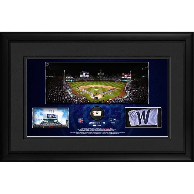 Collage panoramique encadré des Chicago Cubs (10" x 18") avec une balle de baseball utilisée lors du match - Édition limitée à 500 exemplaires