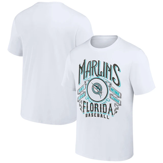Collection Darius Rucker pour homme par Fanatics White Florida Marlins Cooperstown T-shirt en détresse Rock