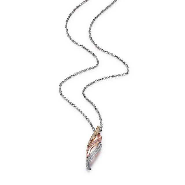Collier à pendentif ELLE en argent sterling et oxyde de zirconium cubique plaqué or 18 carats à 3 tons