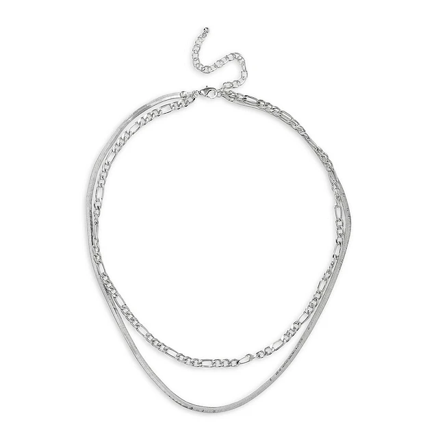 Collier argenté avec chaîne Figaro et chaîne serpentine