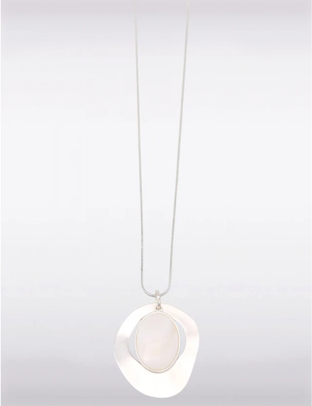 Collier Chic Argenté Hypoallergénique avec Pendentif Abstrait & Pierre Blanche