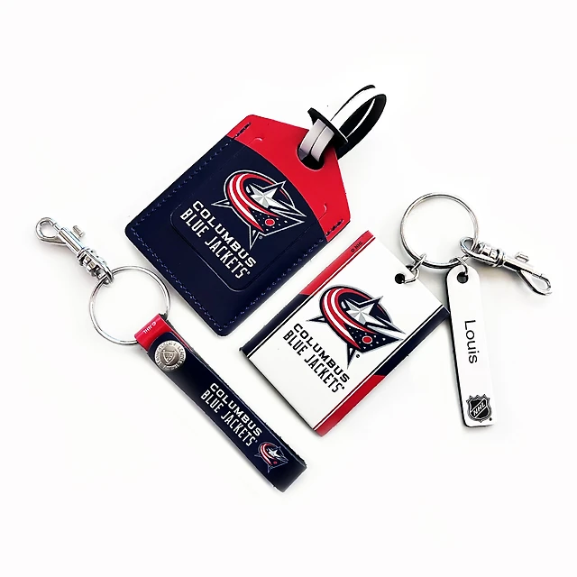 Columbus Blue Jackets - Coffret cadeau trois pièces en cuir avec étiquette personnalisée