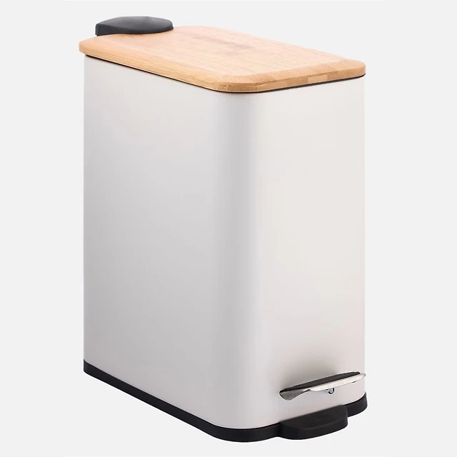 Corbeille rectangulaire à pédale avec couvercle en bambou, blanc - 5 L