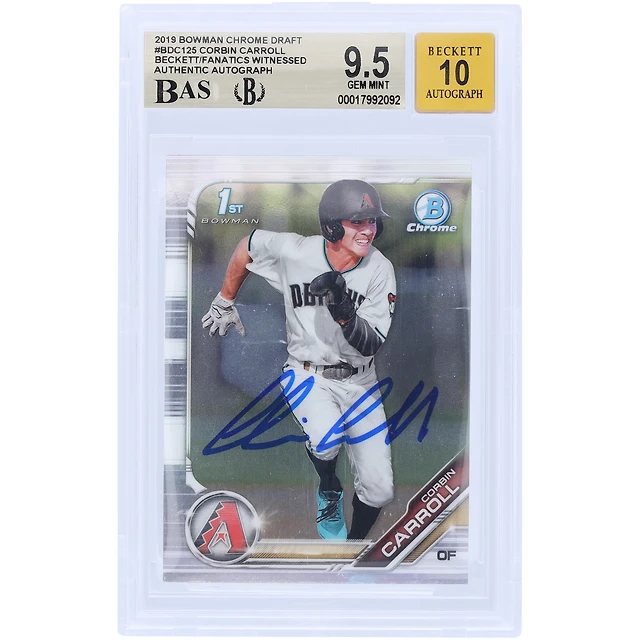 Corbin Carroll Arizona Diamondbacks Autographié 2019 Bowman Chrome Draft 1er Bowman #BDC-125 Beckett Fanatics Témoin Authentifié 9.5/10 Carte