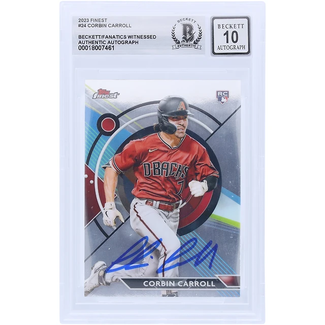 Corbin Carroll Arizona Diamondbacks autographié 2023 Topps Finest #24 Beckett Fanatics a été témoin d'une carte de recrue authentifiée 10