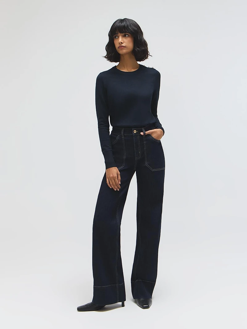 Timeless and versatile, these cotton-blend straight leg jeans are a true wardrobe essential. Designed with a flattering mid-rise waist and a straight cut from hip to the wide hem, they offer a classic fit that works for any occasion. Style them with a tucked-in blouse for a polished look or keep it casual with a tee and sneakers.
