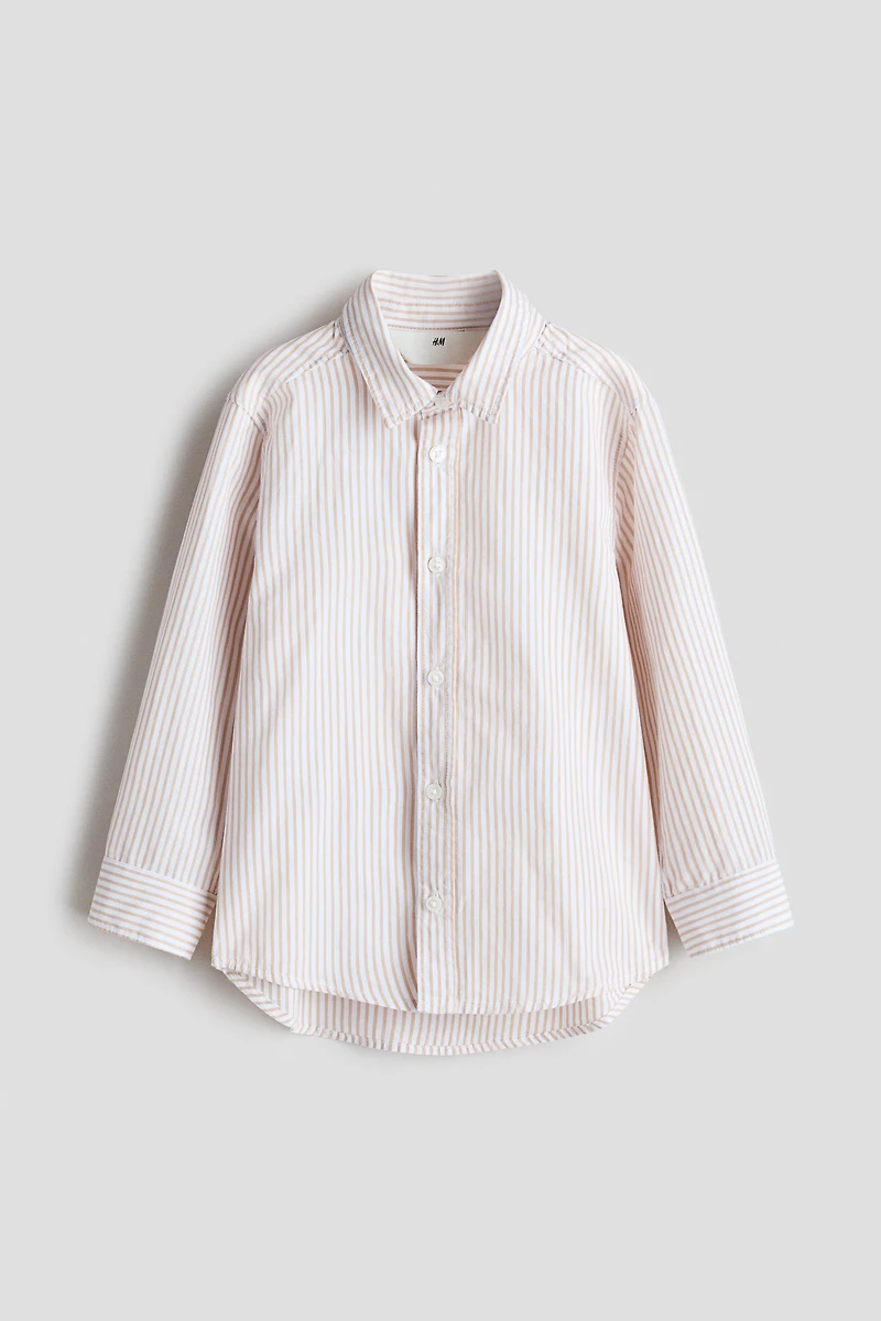 Shirt in airy, woven cotton. Turn-down collar, buttons at front, and long sleeves with button at cuffs. Gently rounded hem, slightly longer at back.