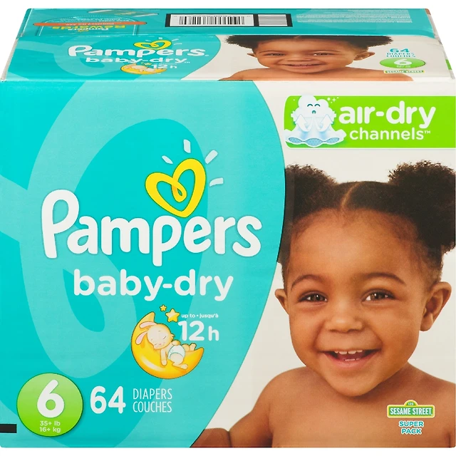 Couches Pampers Baby-Dry, taille 6, 64 couches