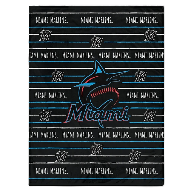 Couverture polaire en flanelle à rayures avec logo Miami Marlins 60'' x 80''