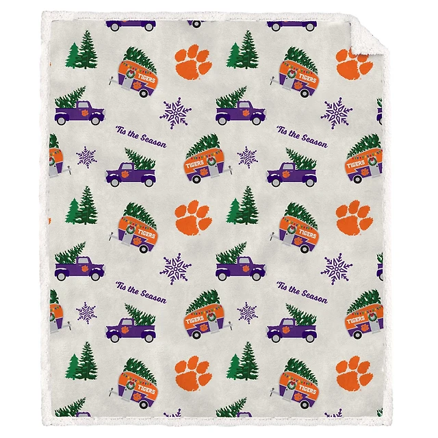 Couverture polaire en flanelle Sherpa Pegasus Clemson Tigers Holiday Truck Repeat 50" x 60"