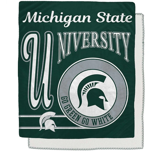 Couverture Sherpa en flanelle polaire avec emblème rétro des Spartans de l'État du Michigan, 50 x 60 pouces