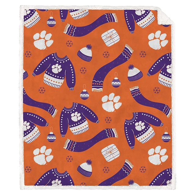 Couverture Sherpa en flanelle polaire Pegasus Clemson Tigers 60 x 70 po Ugly Sweater