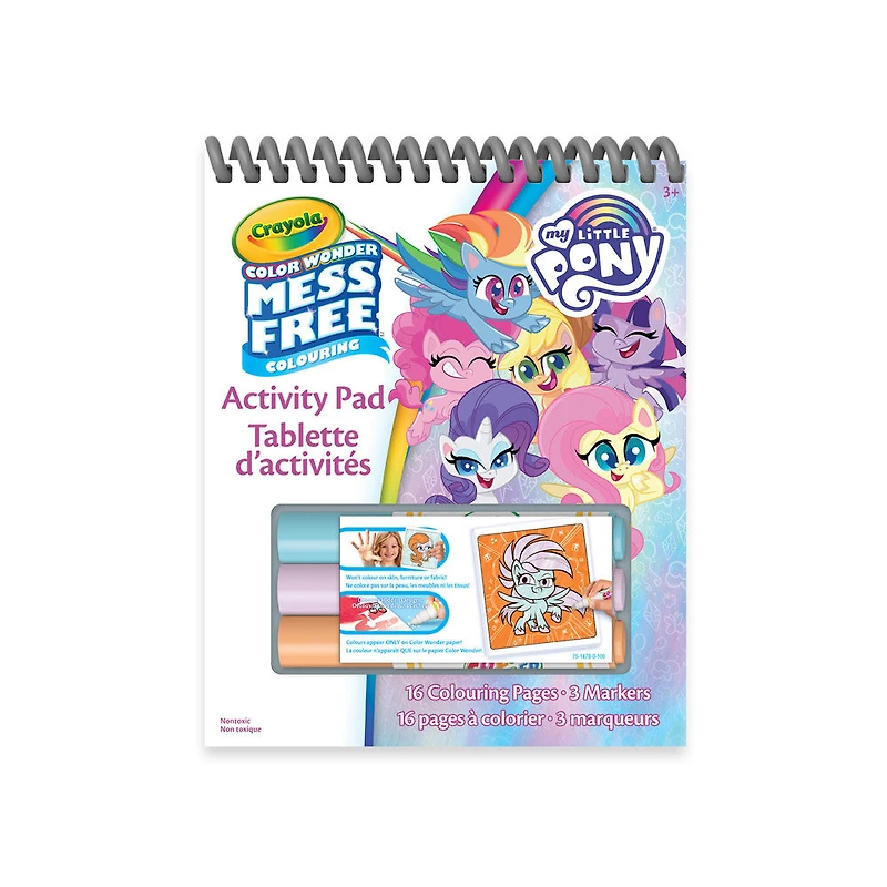 Take My Little Pony and Crayola Color Wonder along for the ride! Infuse fun into every car, plane, or train ride with this easy, on-the-go colouring activity for kids. Makes a great gift for girls and boys as fans of My Little Pony will delight in watching as colours magically appear on their favourite characters! Color Wonder Inks only show up on specially formulated Color Wonder paper, not on skin, clothing, or furniture. Includes 16 Color Wonder Colouring Pages, 3 Mini Color Wonder Markers, and built-in marker storage. Ideal for ages 3 and up.