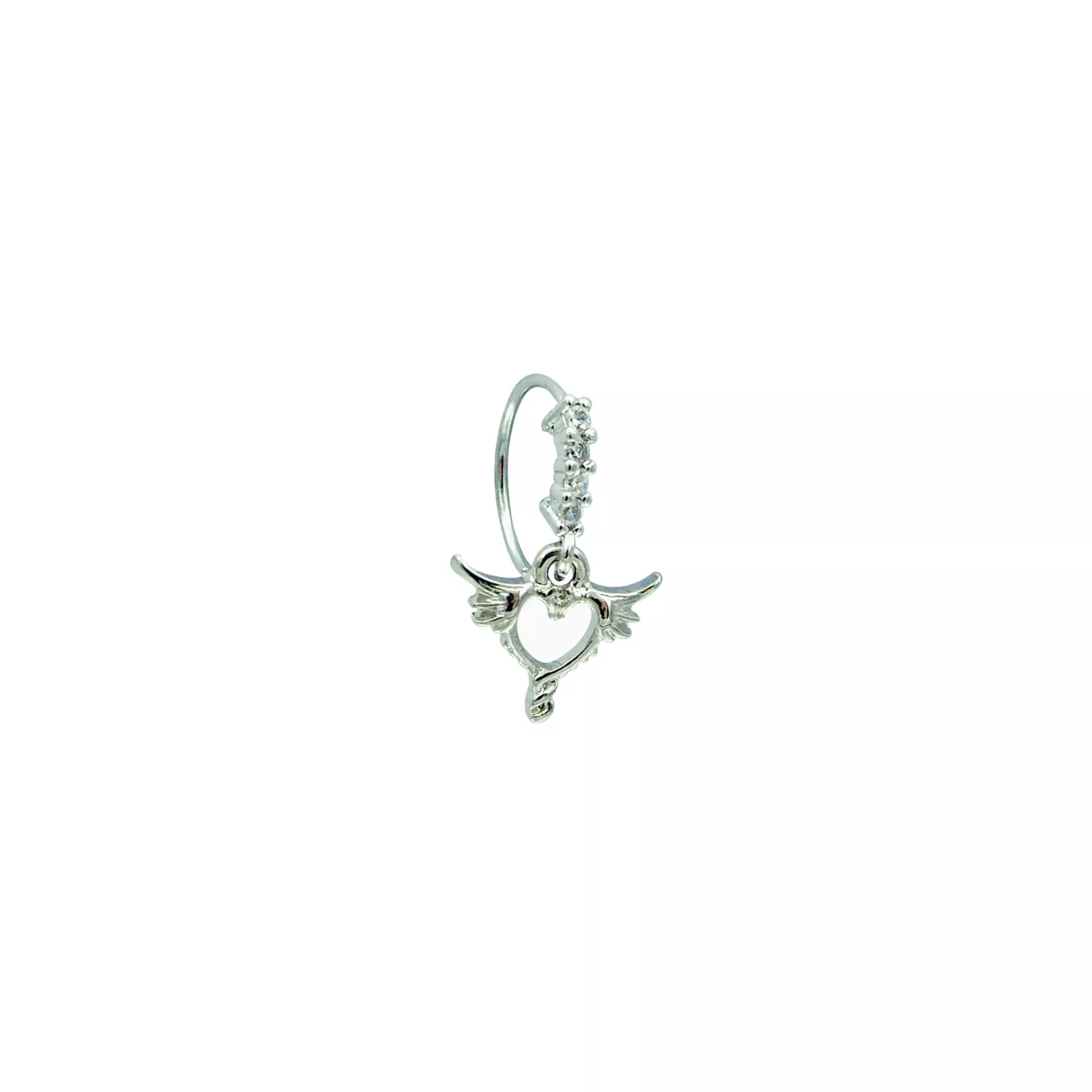 CZ Heart Wing Dangle Hoop Nose Ring - 20 Gauge
