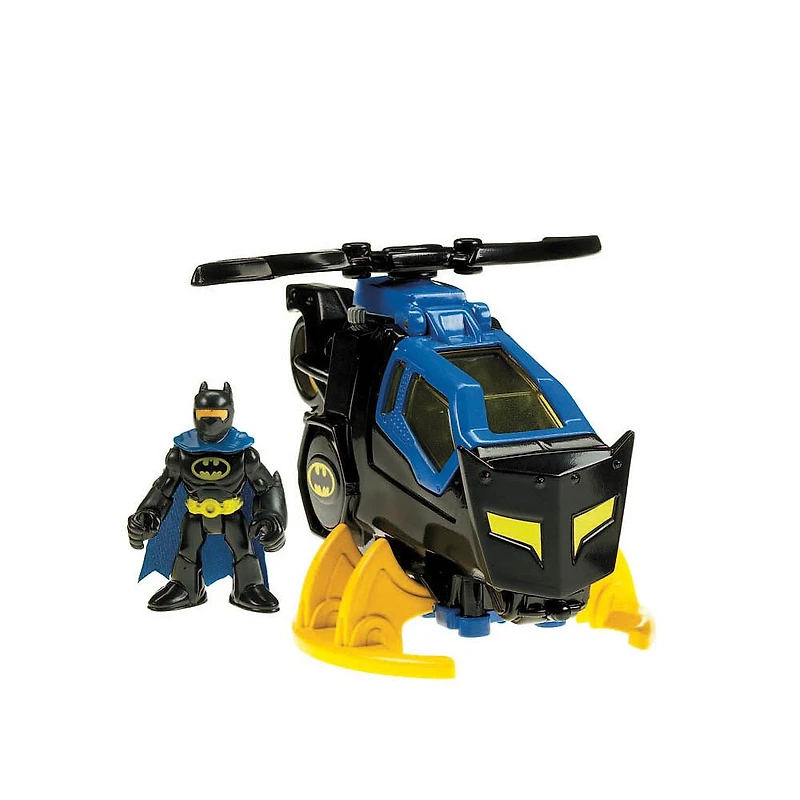 The Batcopter features spinning propellers and disk launcher Each sold separately and subject to availability. Gotham City is in danger-it's up to Batman to save the day. Whether by land, by air, or by water he has super speedy vehicles to chase down villains and get to the scene before it's too late. Choose from the Batwing™ with disk launcher, Batmobile™ with Lights, the Batcopter™ with spinning propellers and disk launcher, or the Batboat™ which has a launching and retractable hook! And if he needs help, he can always call on the Green Lantern™ Jet with arrow launcher. Beware, Batman-The Penguin and The Riddler have speedy vehicles too! Each sold separately and subject to availability. Ages 3-8 yrs