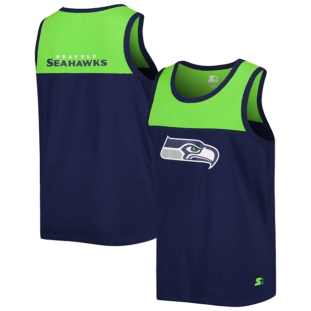 Débardeur Starter College bleu marine/vert fluo Seattle Seahawks Logo Touchdown pour homme