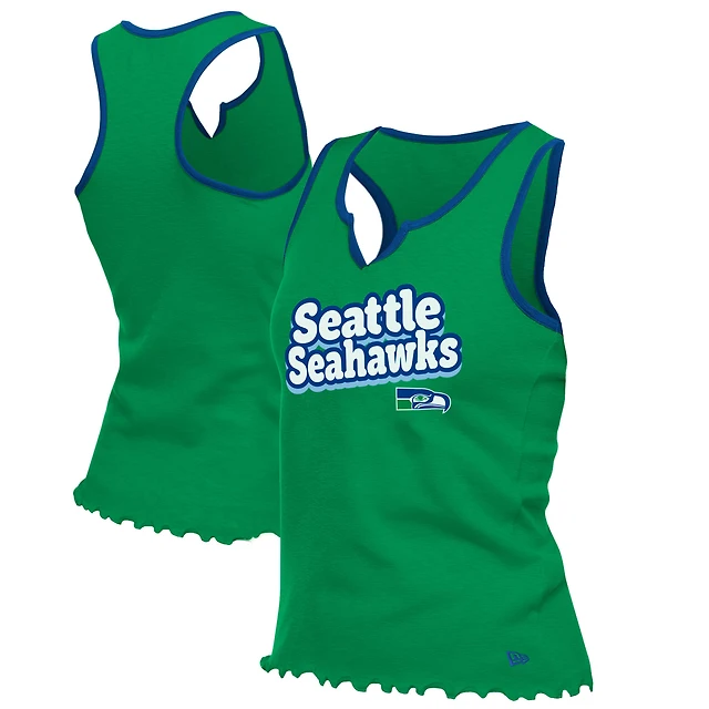 Débardeur tri-mélange à ourlet ondulé et col cranté pour femme New Era, vert fluo, Seattle Seahawks
