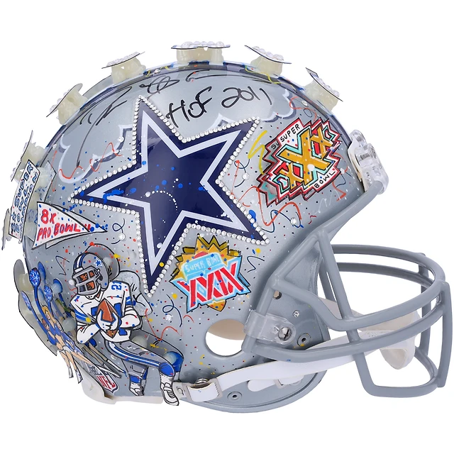 Deion Sanders Dallas Cowboys Autographed Riddell VSR4 Authentic Helmet with "HOF 2011" Inscription - Art by Charles Fazzino - RG13320877