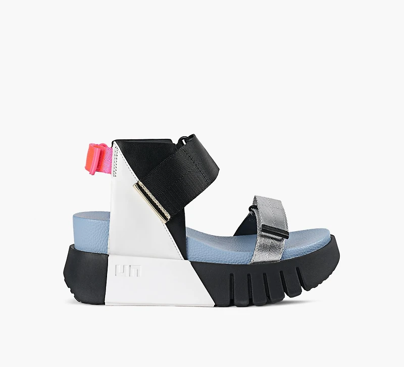 A lightweight platform sandal modernized with geometric shapes and graphic lines. Adjustable straps provide a customized fit and a contoured footbed will make this your go-to sandal.