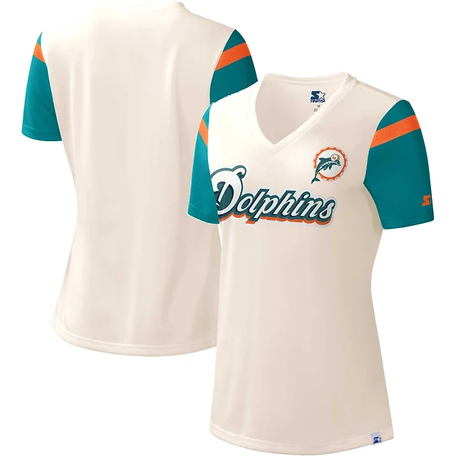 Démarreur blanc Miami Dolphins Kick-Starter pour femme - T-shirt à encolure en V