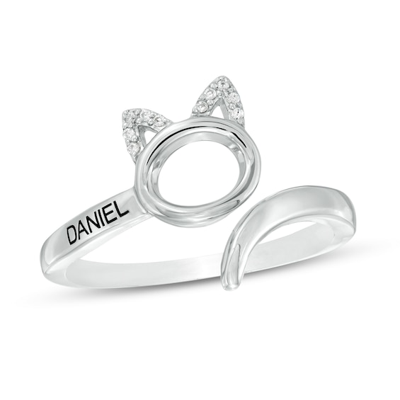 Diamond Accent Engravable Cat Bypass Wrap Ring in Sterling Silver (1 Line)
