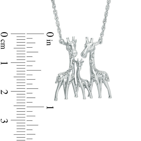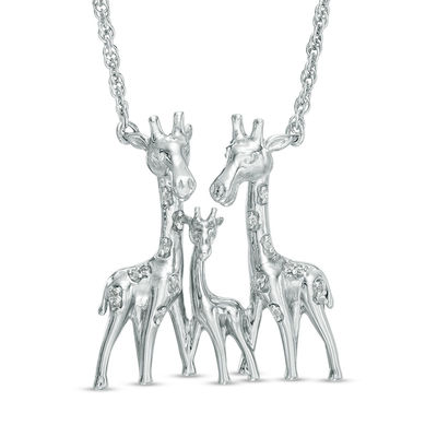 A loving and radiant design, this cute giraffe family fashion necklace is a whimsical look she'll love. Crafted in sterling silver, this charming style features diamond-accented parents and calf in a sparkling pose. Polished to a bright shine, this happy family suspends centred along a 17.0-inch rope chain that secures with a spring-ring clasp.
