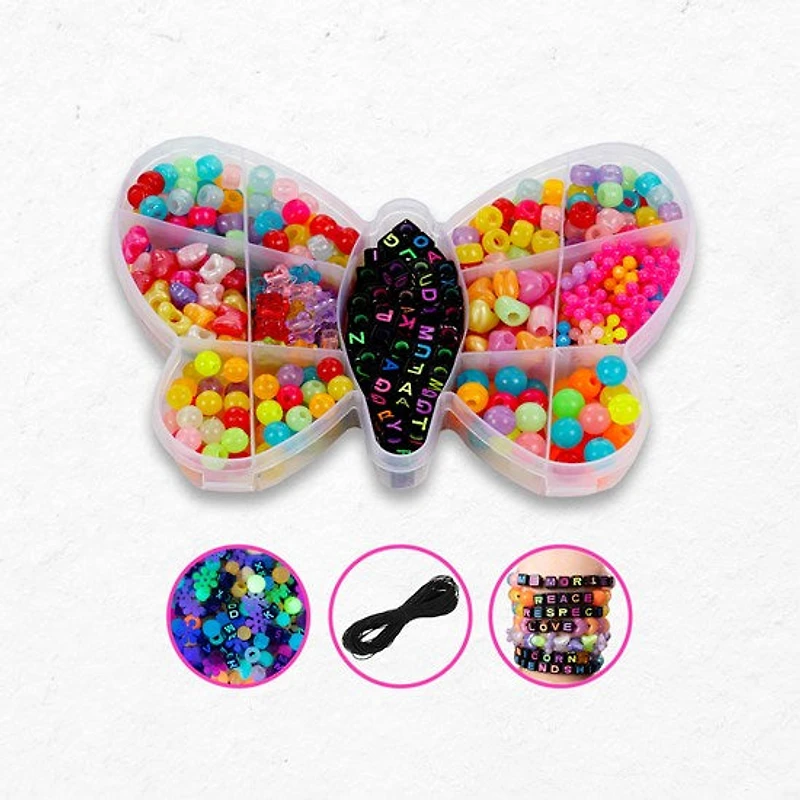 This beautiful kit includes 400 beads in assorted colours and styles, as well as 1 mm black elastic thread. Children will love making bracelets to keep, or to give to their besties. All is presented in a butterfly-shaped plastic case – perfect for giving wings to the creativity of your little ones! Bead sizes vary between 6 mm and 14 mm.