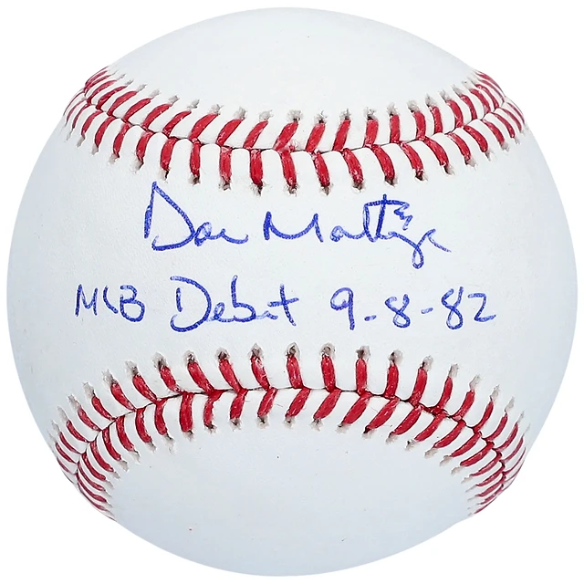 Don Mattingly des Yankees de New York a autographié une balle de baseball de Rawlings avec l'inscription « MLB DEBUT 9-8-82 »